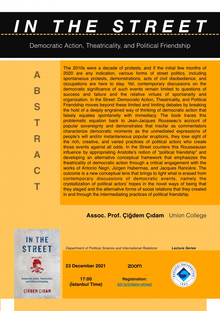 Talk by Çiğdem Çıdam: "In the Street: Democratic Action, Theatricality, and Political Friendship", 23.12.2021, 17:00, Zoom