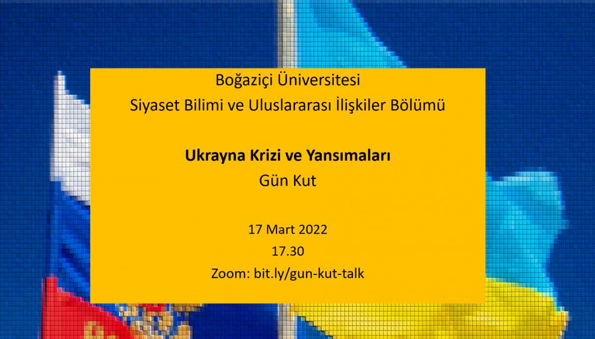 Sizleri bölümümüz öğretim üyelerinden Gün Kut'un Ukrayna krizi üzerine yapacağı konuşmaya davet etmek isteriz. Konuşma 17.03.2022 Perşembe günü 17.30'da Zoom üzerinden yapılacaktır.