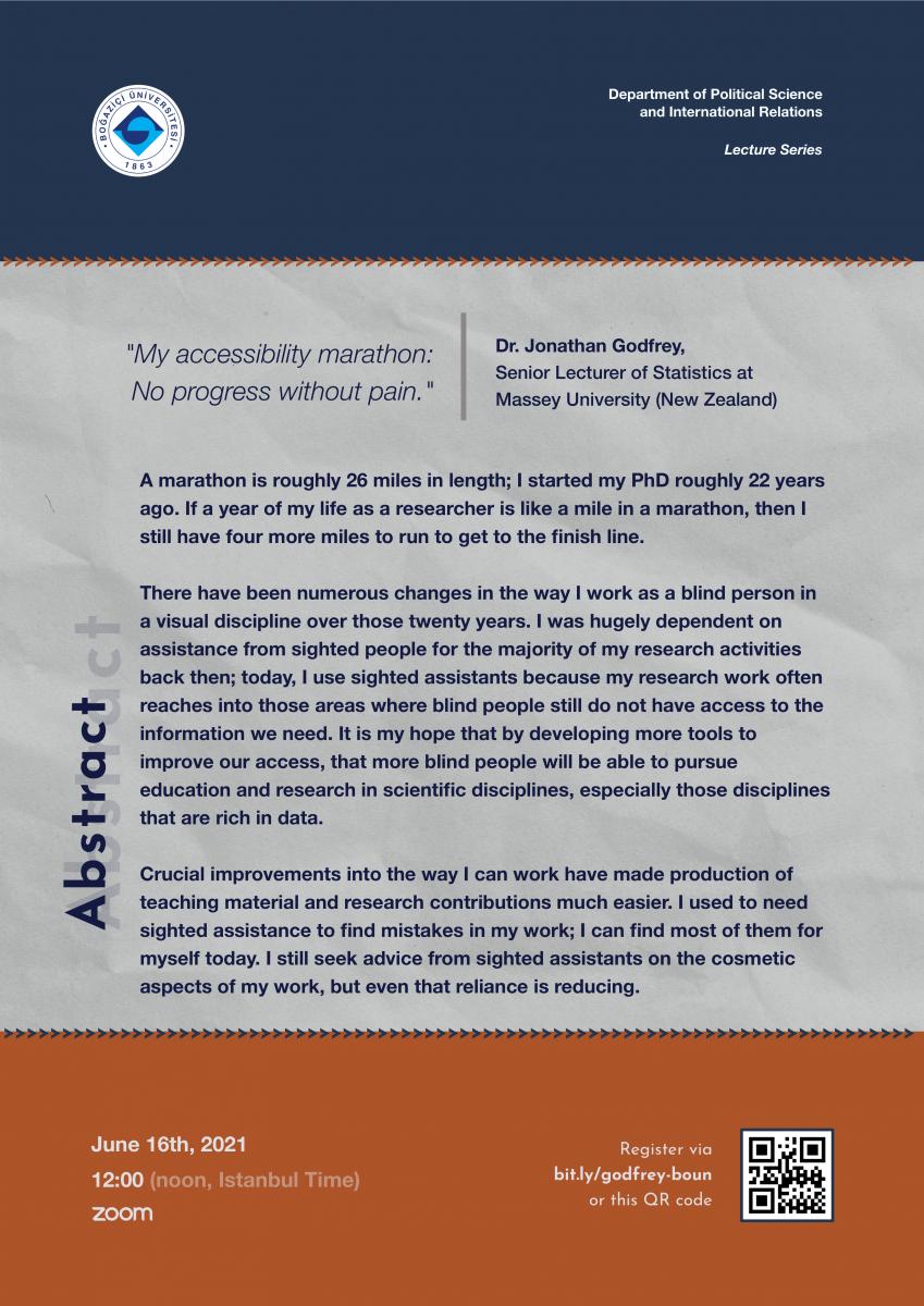 Talk by Jonathan Godfrey: "My accessibility marathon: No progress without pain", 16.06.2021, 12:00, Zoom